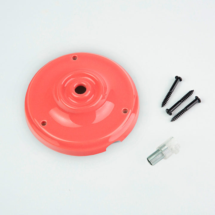 A canopla em cerâmica é o componente do pendente ou luminária fixado no teto ou na parede, dando acabamento à conexão de cabos elétricos. Nesse caso, quando combinadas com nossos cabos elétricos coloridos e nossos botões desviadores, formam composicões criativas e elegantes, e o melhor, sem obras!