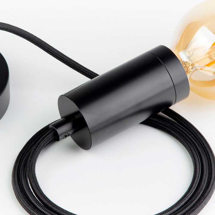 KIT PENDENTE ALUMÍNIO BOCAL G COM LÂMPADA LED ESFERA PRETO