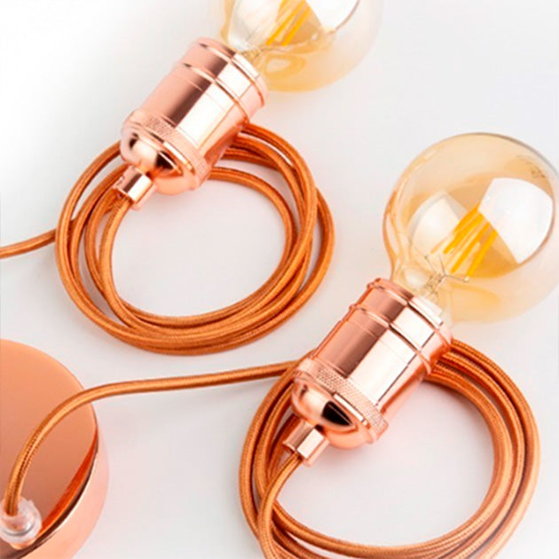 KIT PENDENTE DUPLO VINTAGE COM LÂMPADA de LED ESFERA - COBRE