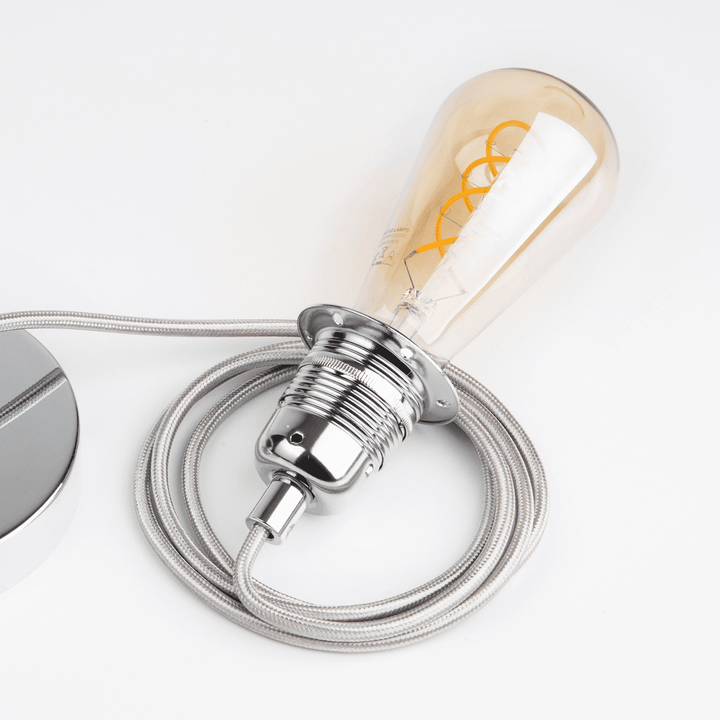 | Observação | Canopla em alumínio com 1 furo - Cromado Cabo elétrico com 1,5m de extensão - Cinza Bocal em metal Frisado - Cromado Lâmpada Decorativa com Filamento de LED Heart Bivolt 2700K 4W |